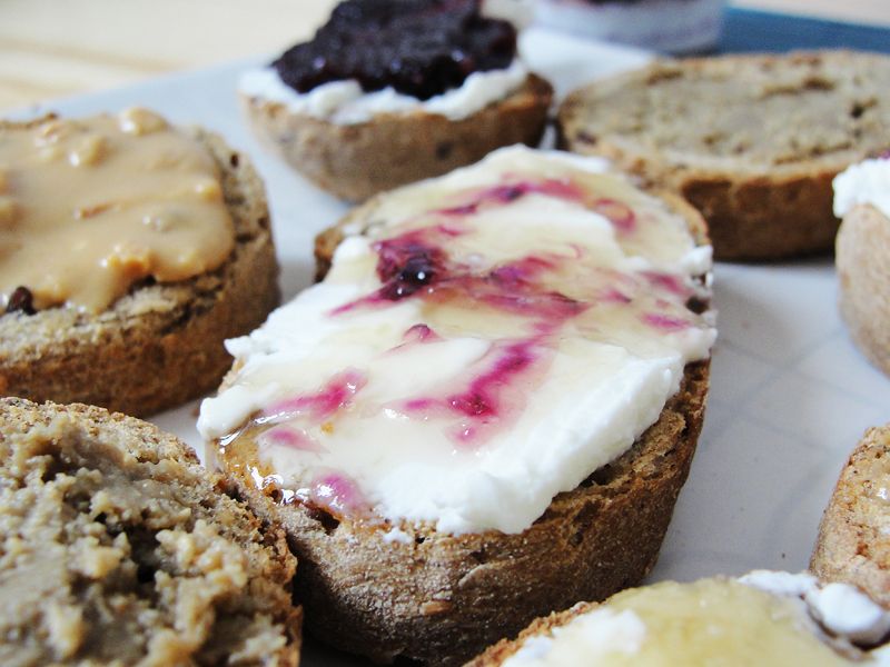Zacznij od pokrojenie bułki w poprzek na niewielkie kromki. Zależnie od posiadanego urządzenia, włóż je albo do tostera, albo do grilla. Ewentualnie możesz podpiec bułkę w piekarniku lub nawet na patelni, jednak uważaj przy tym by nie spalić pieczywa. Cieplutkie kawałki posmaruj dowolnie.